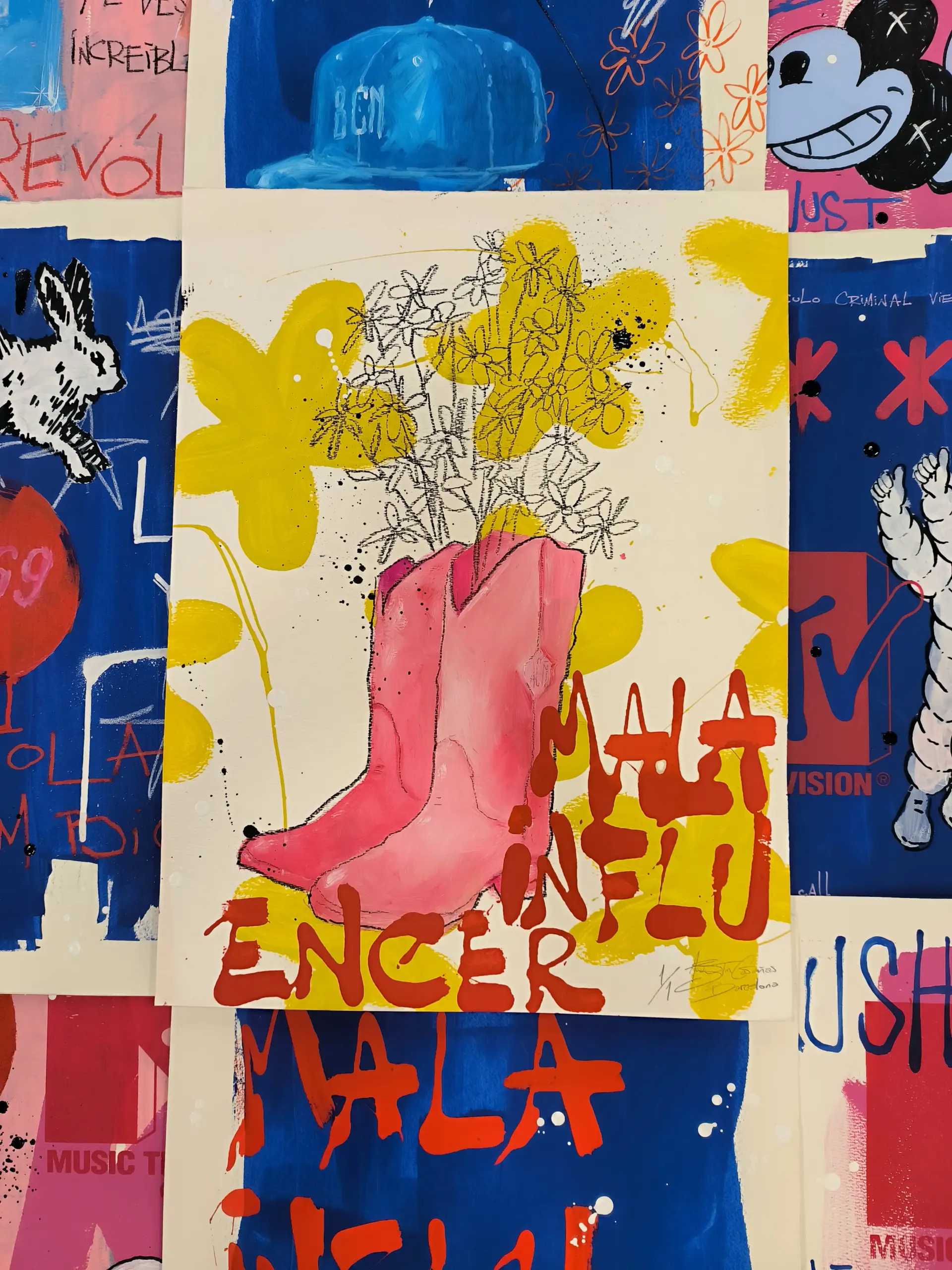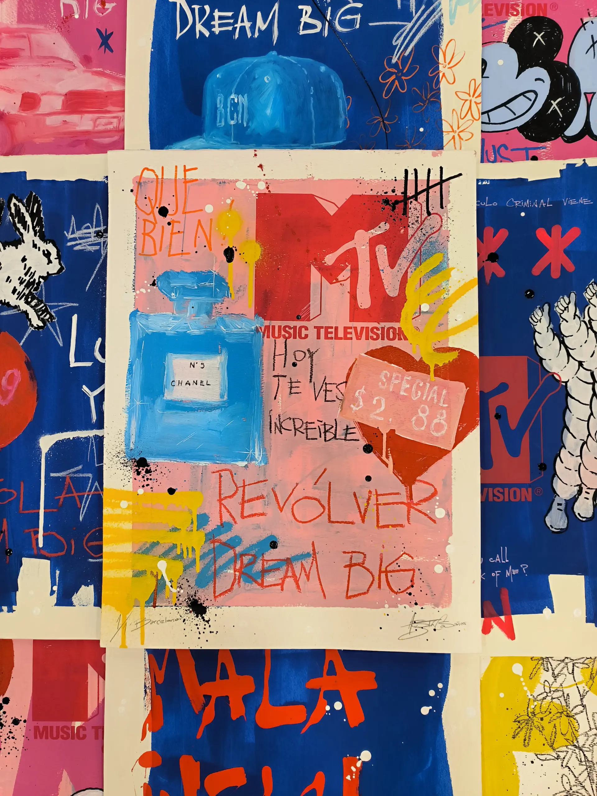 Serie compuesta por obras en dos formatos: 78×104 cm y 45×60 cm. Técnica mixta sobre papel de grabado de alta calidad