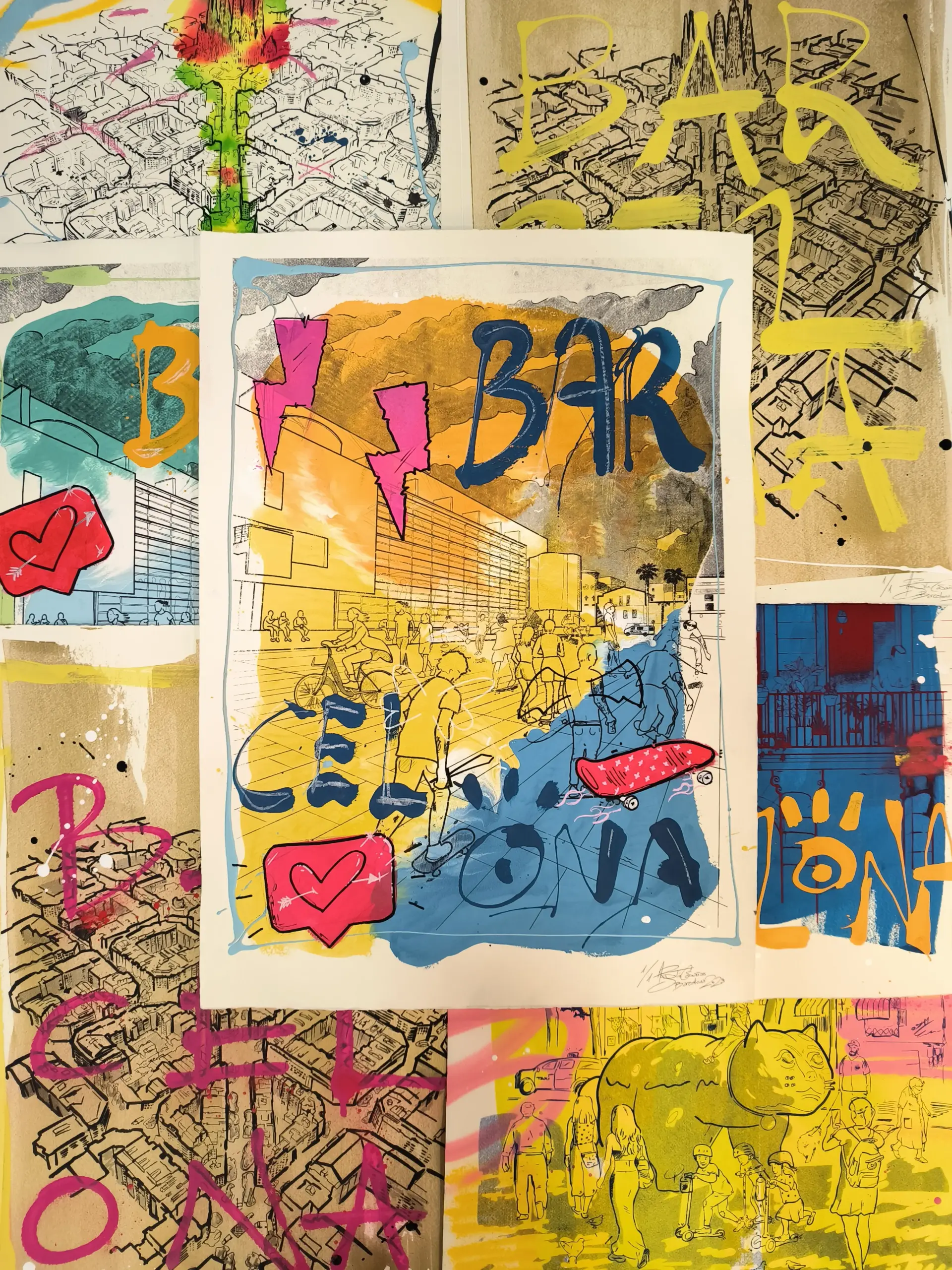 Láminas disponibles en 56×78 cm y 45×60 cm. Técnica mixta sobre papel de grabado de alta calidad